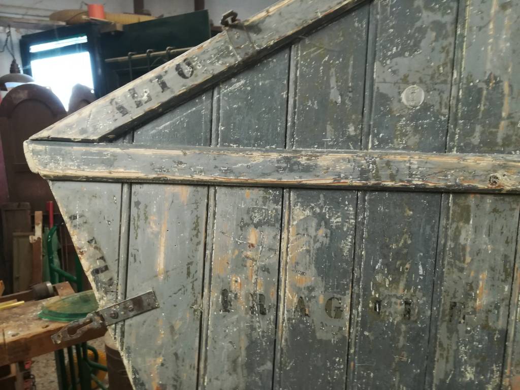 Beautiful 1920s harp transport case set up as a wardrobe. On request, the interior equipment can be modified according to usage preferences.