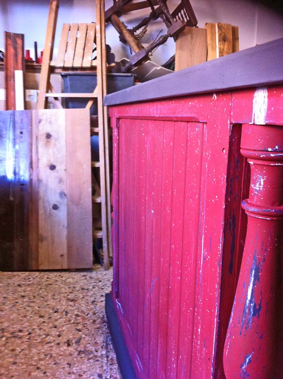 All old and new elements must penetrate each other. To ensure that the final effect is that of an original counter in all its parts, it is essential that all the pieces are worked with the same technique as the original piece of furniture. For this reason, many of our work are done by hand with vintage tools. The final color is the result of various steps with different shades, then aged and patinated.
