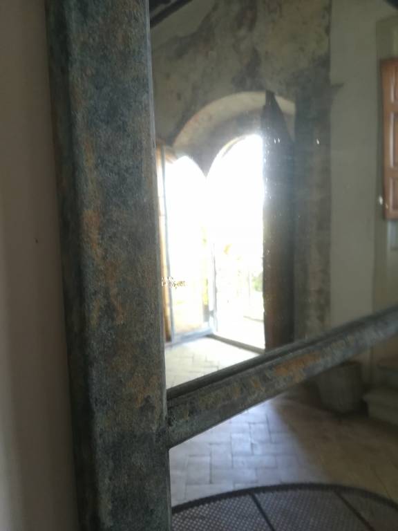 This time an old window of the right size to create a mirror. The entire frame was cleaned of the old paint once the windows were removed. On this object we had fun with our finishing techniques and we created a metallic effect in oxidized bronze and rust. The old mirrors come from a recovery. The hanging hooks are old iron chains. Also in this case GIAKKEMIKKE saved an object from oblivion.