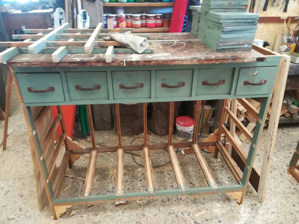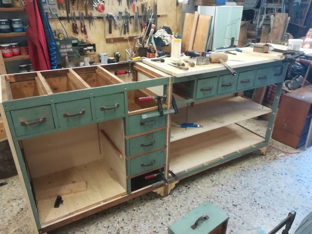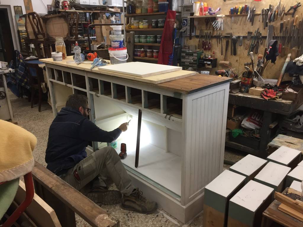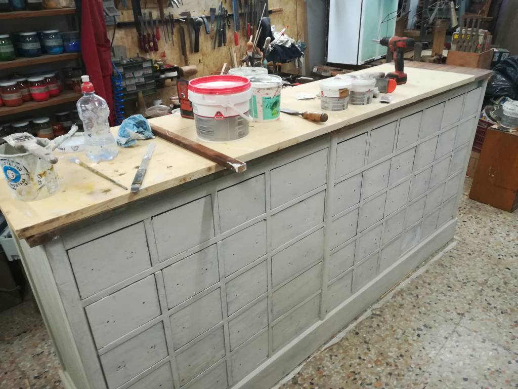 What you are looking at is the result of a bailout. When they called us to view some industrial drawers to buy, we found ourselves facing a half disaster. Those who had contacted us had seen fit to free them by cutting them with the chainsaw and also giving them some nice blows. But we were not impressed by furniture saviors. Once purchased, (in total there are more than seven meters of drawers), a part immediately ended up in the shop to be transformed. In this case, the customer needed a long and capacious sideboard but that was not the usual belief. Thus this kitchen cupboard – drawers was born. All the low structures have been removed to create the internal spaces. Some drawers have been saved for classic use. The drawer fronts and the respective frames were put together to create the doors. New interiors, new color, original handles; that’s how GIAKKEMIKKE turns a scrap into unique piece!