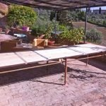 Questo lavoro,pensato per un agriturismo a Impruneta, è la soluzione pratica, per ovviare a un problema di pendenza nella pavimentazione dell’aia dove è stato poi collocato.L’utilizzo delle acca da ponteggio ha permesso di inserire i piedi regolabili, ottimi per metterlo in bolla. Considerando la grandezza dell’opera, tutto l’allestimento è stato realizzato nell’officina del fabbro che, con santa pazienza, ci asseconda nei nostri progetti.